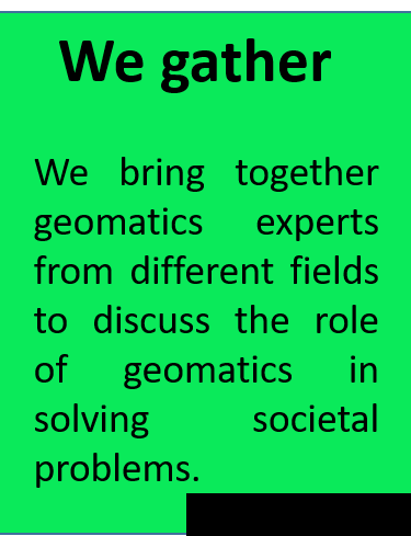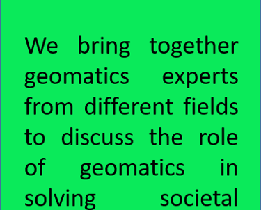 We bring together geomatics experts from different fields to discuss the role of geomatics in solving societal problems.